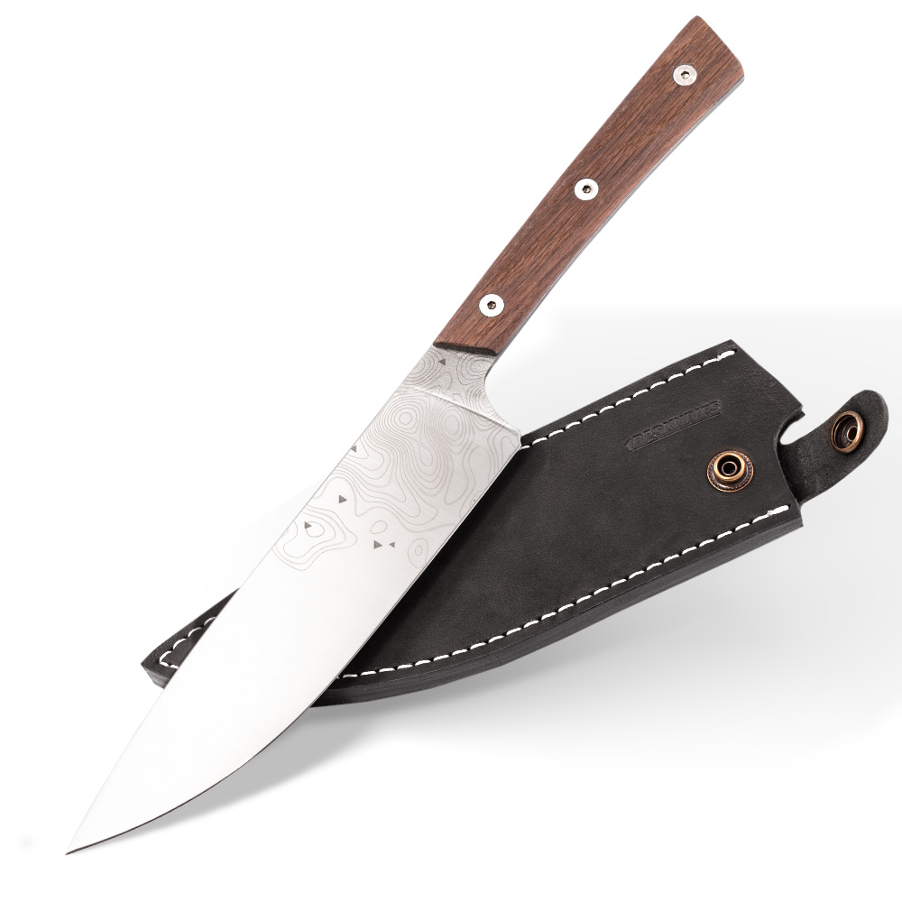 BPS Knives Rosemary Umber – Limited Edition Handmade Kitchen Knife | Satin Stainless Steel 5Cr14MoV Bog Oak Black Leather