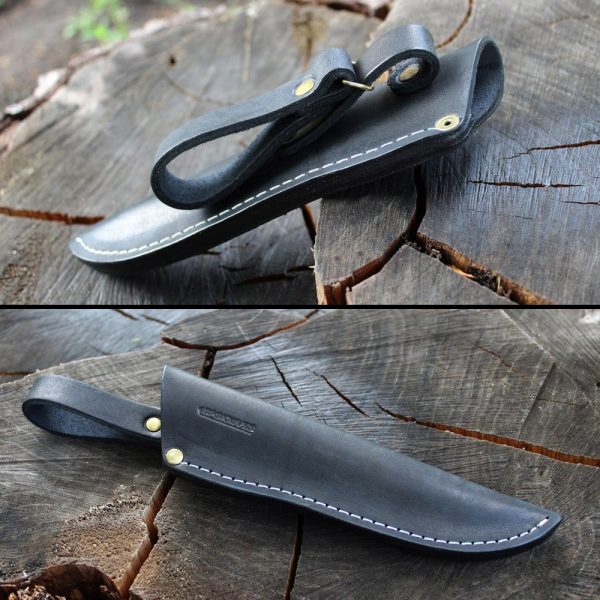 BPS Knives SH06 black leather sheath for fixed blade knives. Sheath is fixed on the dangler. This makes it easy to use – during bending and moving it will hang freely on the belt and will not  hinder movement. There is also a possibility of fixed suspension of the sheath on the belt.