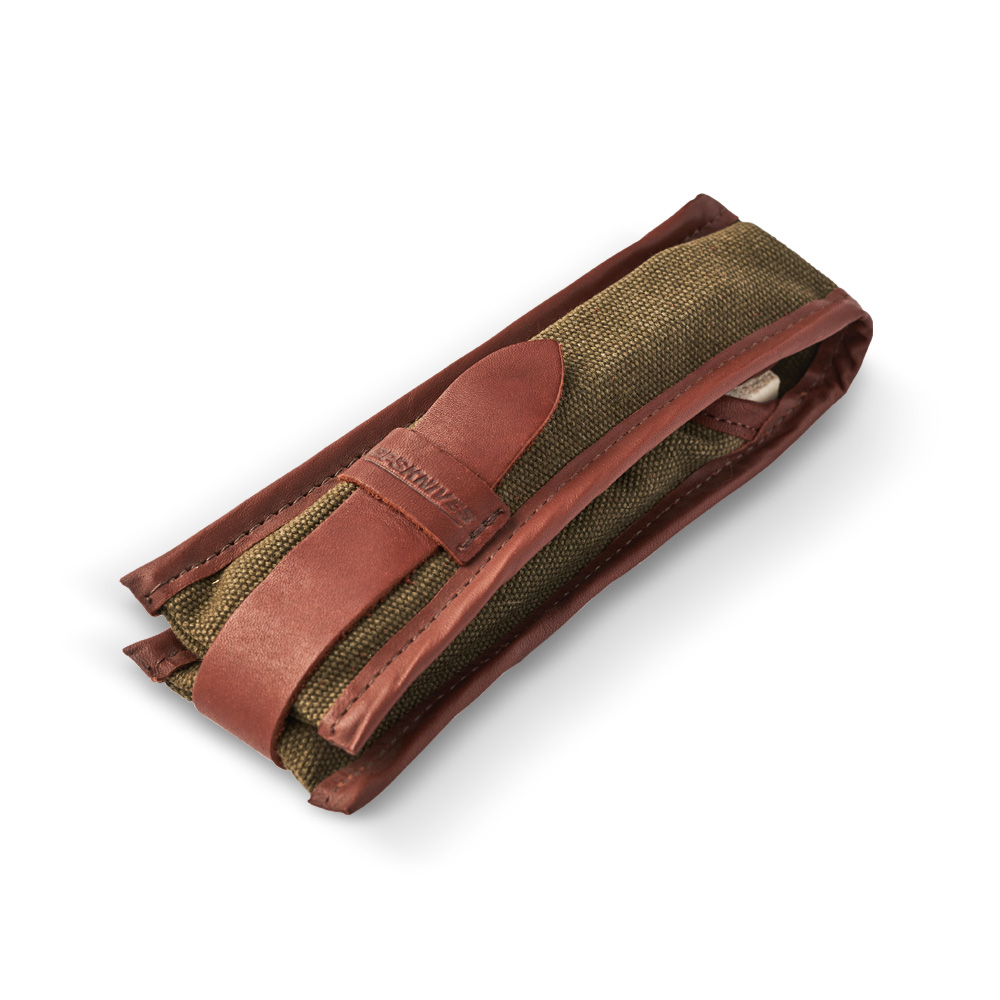 BPS Knives Sharpening Set 2 Stones is a compact package containing two sharpening stones (gradation 240 and 800), polishing compound (5-3 microns) and a leather strap for smoothing the cutting edge. The whole is packed in a tasteful, nylon pouch.