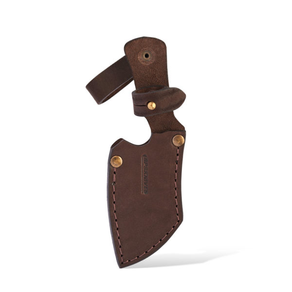 Knife comes with a leather sheath. This is a classic solution that matches the style of the tools in it. Wood and leather have always been the perfect combination. The sheath has an additional clasp to prevent the knife from falling out. It is traditionally attached to the waist or a backpack in vertical position.