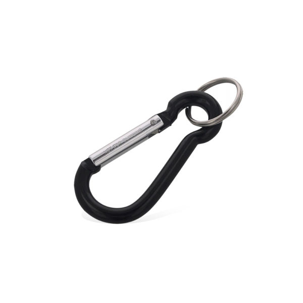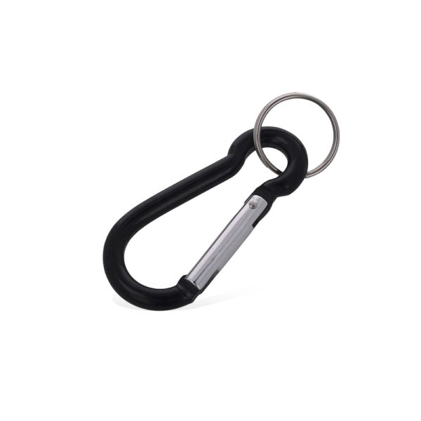 Carabiner FOX 6 Aluminium IO-30706 Black 6 cm made of light and durable black anodized aluminum (it is resistant to moisture – stainless). The spring-loaded movable element of the carabiner has a silver color, which intuitively indicates the place that should be pressed to open the carabiner. An inseparable element of the carabiner is a steel ring used to attach keys, etc. to the permanent element of the backpack.