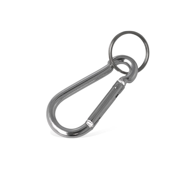Carabiner FOX 6 Aluminium IO-30706 Silver 6 cm made of light and durable aluminum (it is resistant to moisture – stainless). The spring-loaded movable element of the carabiner has a silver color, which intuitively indicates the place that should be pressed to open the carabiner. An inseparable element of the carabiner is a steel ring used to attach keys, etc. to the permanent element of the backpack.