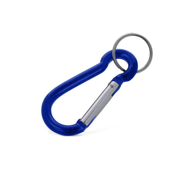 Carabiner FOX 7 Aluminium IO-30707 Blue 7 cm made of light and durable blue anodized aluminum (it is resistant to moisture – stainless). The spring-loaded movable element of the carabiner has a silver color, which intuitively indicates the place that should be pressed to open the carabiner. An inseparable element of the carabiner is a steel ring used to attach keys, etc. to the permanent element of the backpack.