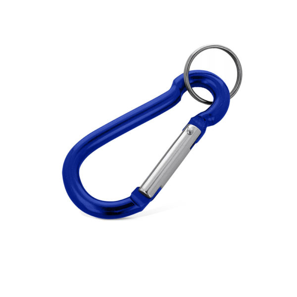 Carabiner FOX 8 Aluminium IO-30708 Blue 8 cm made of light and durable blue anodized aluminum (it is resistant to moisture – stainless). The spring-loaded movable element of the carabiner has a silver color, which intuitively indicates the place that should be pressed to open the carabiner. An inseparable element of the carabiner is a steel ring used to attach keys, etc. to the permanent element of the backpack.