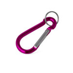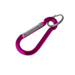 Carabiner FOX 8 Aluminium IO-30708 Pink 8 cm made of light and durable pink anodized aluminum (it is resistant to moisture – stainless). The spring-loaded movable element of the carabiner has a silver color, which intuitively indicates the place that should be pressed to open the carabiner. An inseparable element of the carabiner is a steel ring used to attach keys, etc. to the permanent element of the backpack.