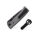 The handle frame is made of steel, secured with torx screws and a backspacer. The Micarta handle scales offer a comfortable grip and are resistant to moisture, temperature changes, solvents, and acids. This durable material features a textured, non-slip surface and can resemble natural materials in appearance.