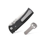 - Handle: Steel frame, G10 backspacer, black Micarta (Black Canvas Micarta) scales, steel Torx screws, steel clip (stonewash finish)