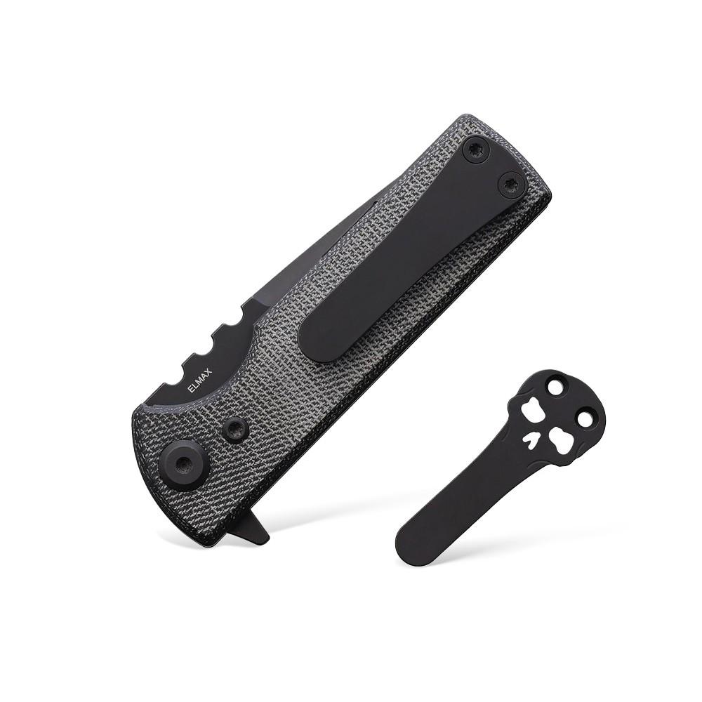 - Steel: Elmax (60-62 HRC), finish: black PVD coating