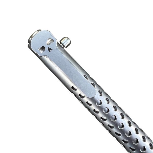 Removable titanium clip will allow you to carry a pen in a shirt pocket, attach it in a bag, backpack, etc. Carrying in this way (“at hand”), will allow quick and trouble-free access if you need to use it. The clip was formed into a skull pattern characteristic of this manufacturer.