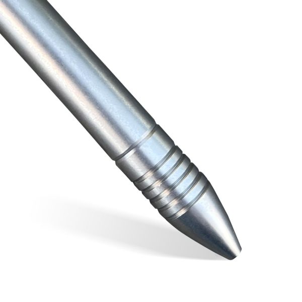 This pocket-sized pen is built to the same standards of excellence as Chaves Knives. The barrel, clip, and thruster are all made from titanium, keeping the pen light and non-magnetic. It is attractive, durable and grippy thanks to ribbed, stonewashed body.