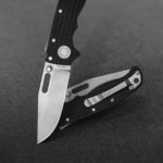 The knife is opened by means of a double-sided thumb stud or a hole (thumb hole) placed in it, or in a faster way, by a simultaneous vigorous hand movement and pulling the Shark Lock ™ fin. The producer made it possible to select the opening method to individual preferences.