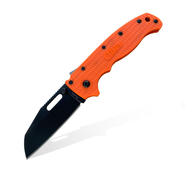 Demko Knives AD20.5 Shark Foot AUS10A DLC Shark Lock Orange Grivory Folding Knife Folder is a project of American knifemaker Andrew Demko.
