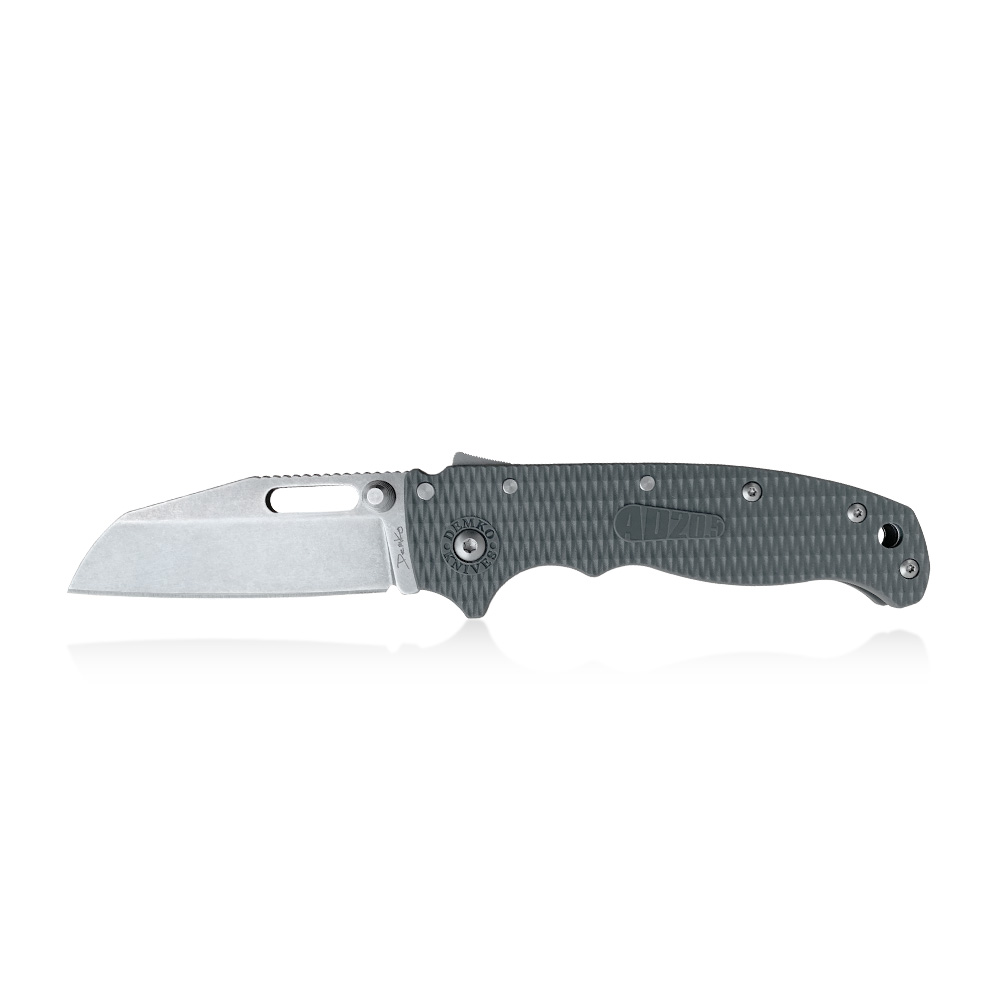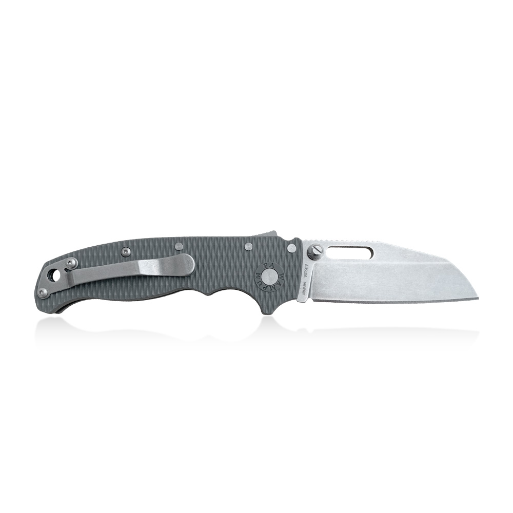 Demko Knives AD20.5 Shark Foot AUS10A Shark Lock Gray Grivory Folding Knife Folder is a project of American knifemaker Andrew Demko.