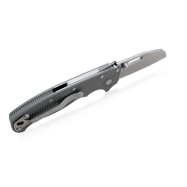The knife is opened by means of a double-sided pin mounted in the blade (thumb stud) or a hole (hole stud) placed in it, or in a faster way, by a simultaneous vigorous hand movement and pulling the Shark Lock ™ fin. The producer made it possible to select the opening method to individual preferences.