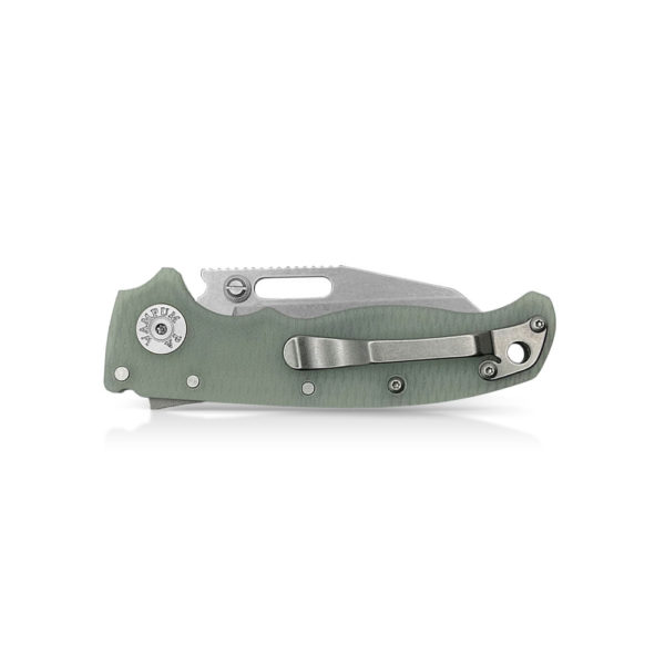 The knife is opened by means of a double-sided thumb stud or a hole (thumb hole) placed in it, or in a faster way, by a simultaneous vigorous hand movement and pulling the Shark Lock ™ fin. The producer made it possible to select the opening method to individual preferences.