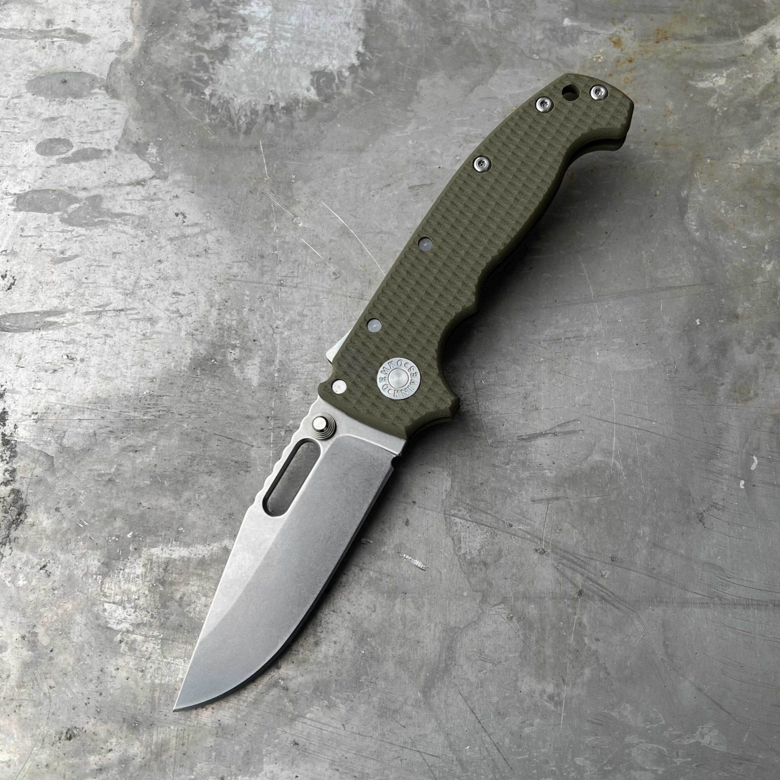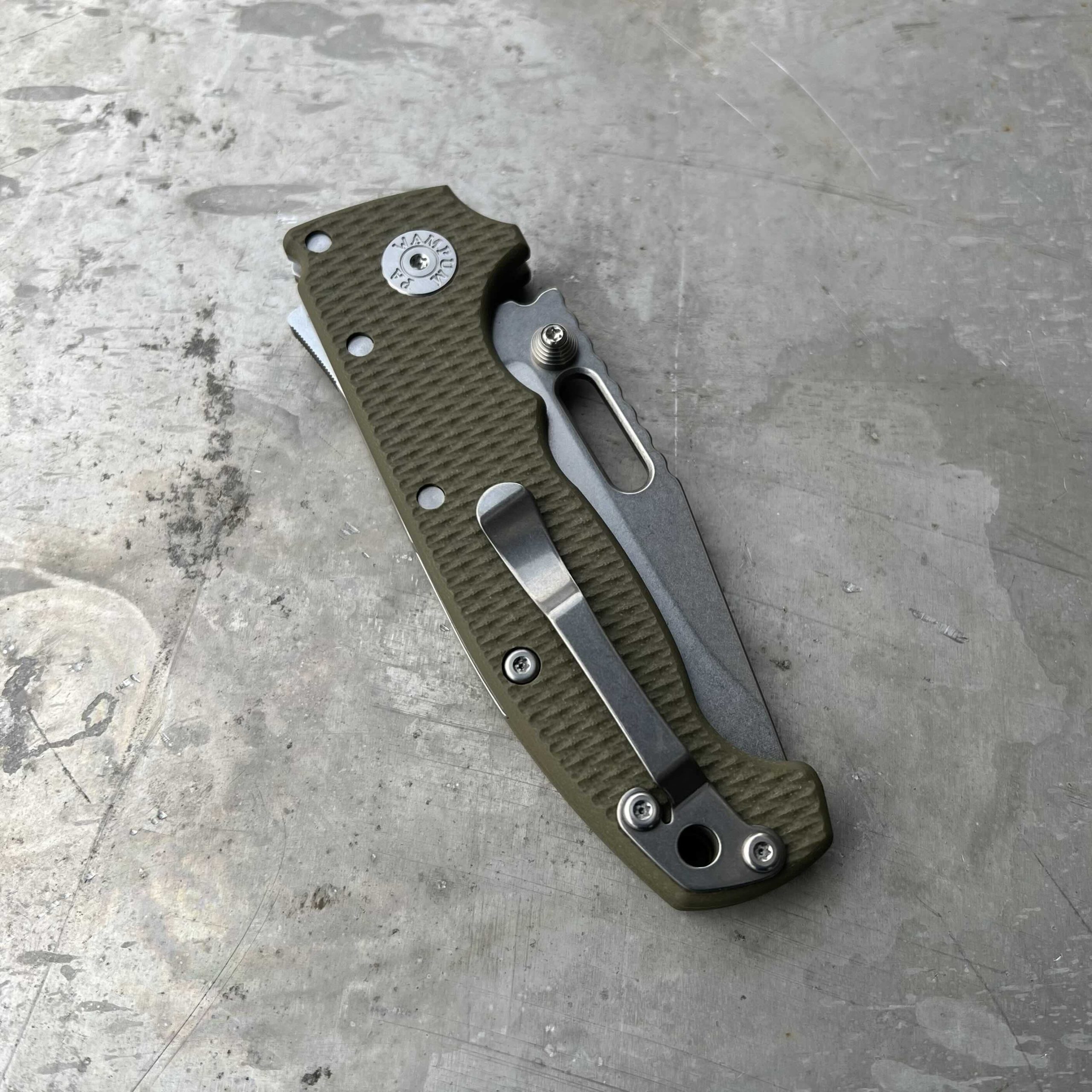 The Demko Knives MGAD20S Clip Point 20CV with Shark Lock in OD Green G10 is the flagship product from the Demko brothers: Andrew, a well-known designer for many years, and John, responsible for production and sales in their family project