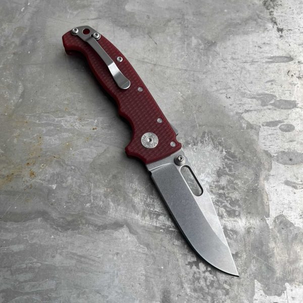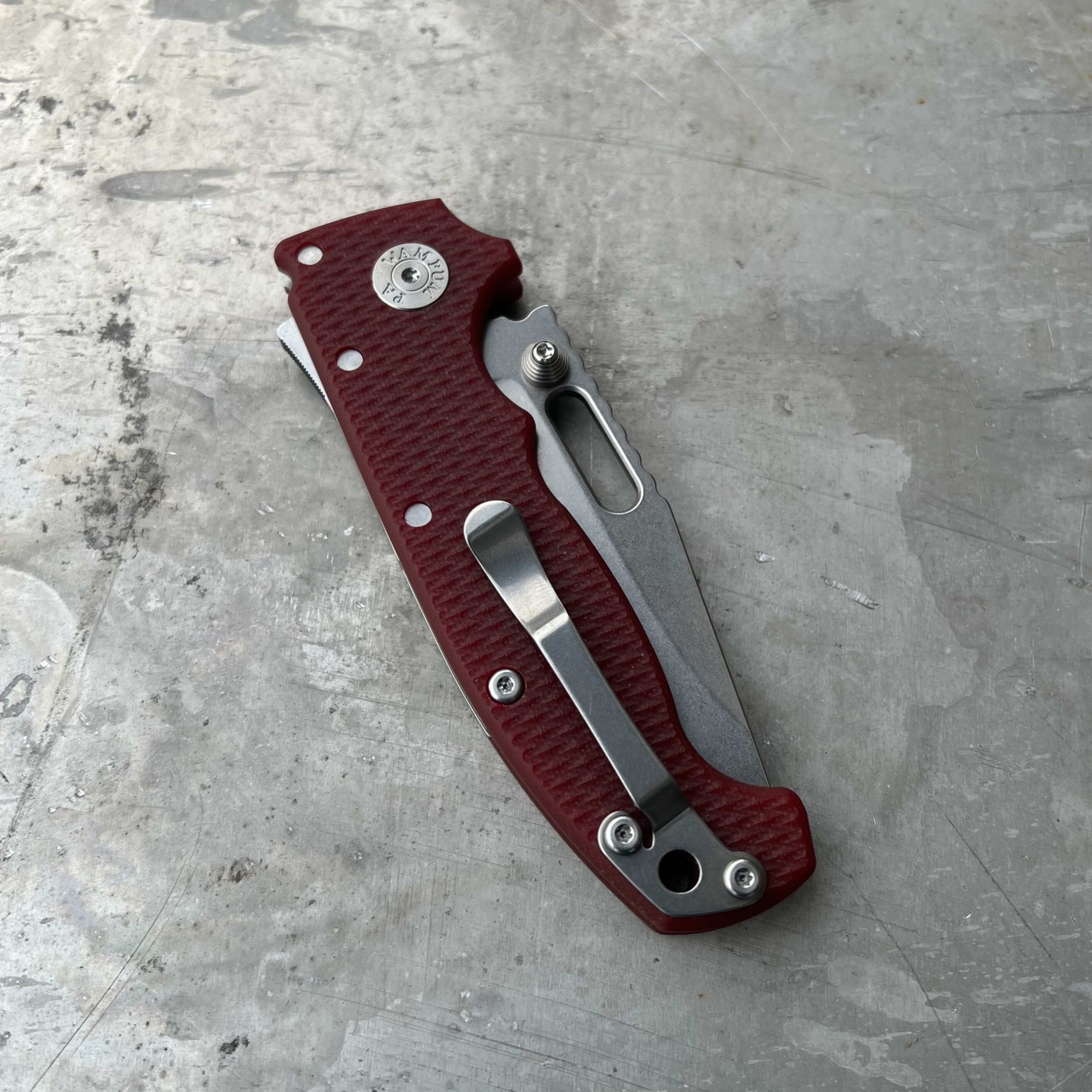 The Demko Knives MGAD20S Clip Point 20CV with Shark Lock in Red G10 is the flagship product from the Demko brothers: Andrew, a well-known designer for many years, and John, responsible for production and sales in their family project