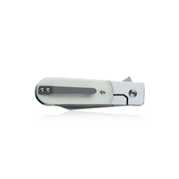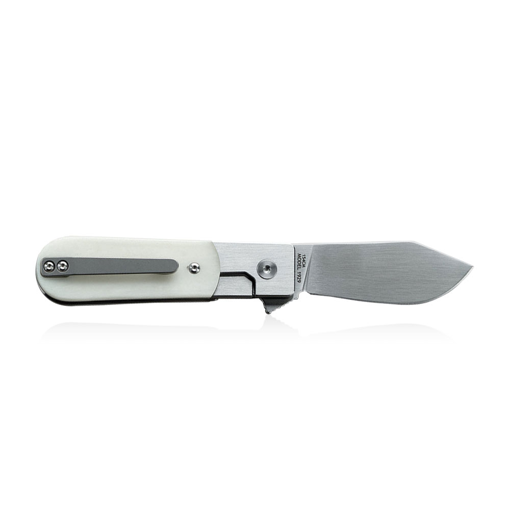 The knife has a steel body (liners and bolster), to which the cladding of the handle made of white bone is attached. It is a natural material that is chemically treated and looks very exclusive. Literally it looks like mother of pearl.