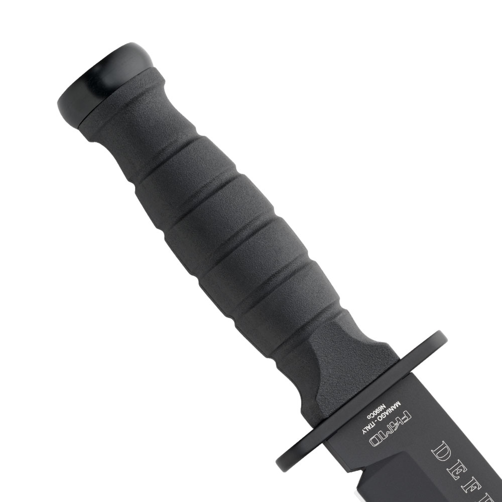 Rękojeść noża wykonana została z tworzywa FRN (nylon wzmocniony włóknami szklanymi). Rękojeść zakończona jest wystającym poza jej obrys stalowym elementem konstrukcji, mogącym służyć jako zbijak lub młotek. Pomiędzy ostrzem a rękojeścią zlokalizowano obustronną gardę zapobiegającą zsuwaniu się dłoni na krawędź tnącą podczas pracy.