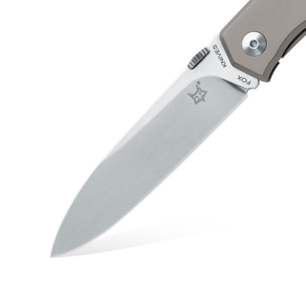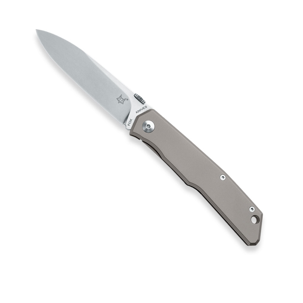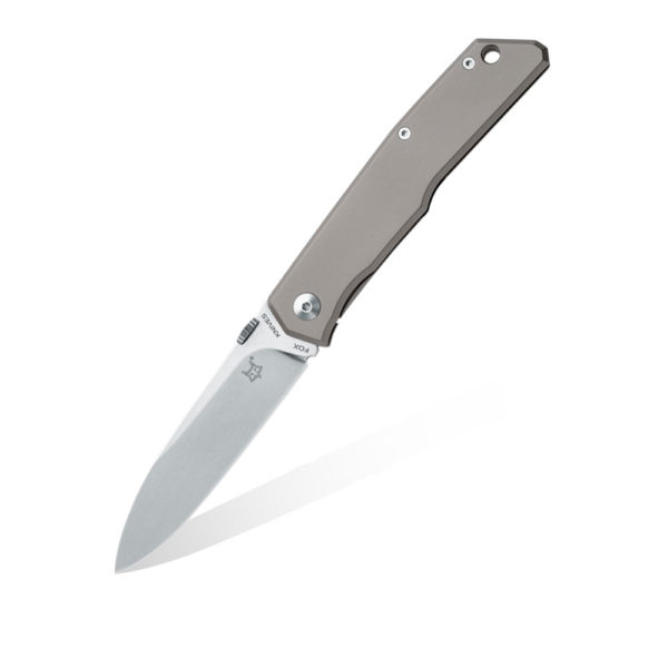 FOX Knives The Sicilian FX-525 TI Folding Knife by Bob Terzuola has a N690 stainless steel blade (stone washed finish) and titanium handle. The knife blade is blocked by a frame lock, and titanium clip is used to carry it. The knife comes with a nylon pouch for its storage.