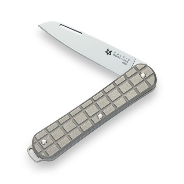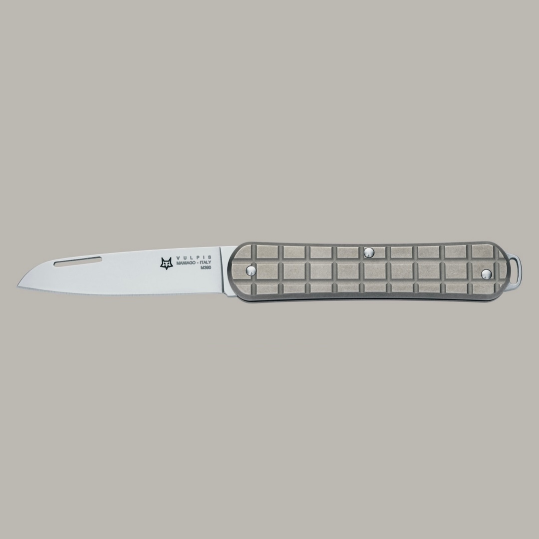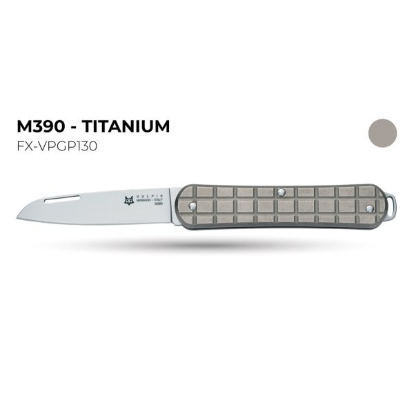 Fox Knives Vulpis FX-VPGP130 TI Polished M390 Bead Blasted Titanium Milled Pattern