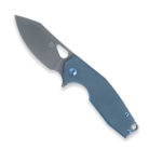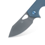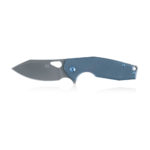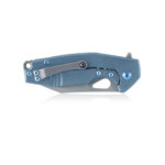 FOX Knives Yaru FX-527 TI Folding Knife CPM S90V Titanium by Jasper Voxnæs has a blade made of premium CPM S90V steel (coarse stone wash), a handle made of titanium (blue anodized). The knife blade is locked by a frame lock, and the knife is easy carried thanks to titanium carrying clip. The knife comes with a leather pouch.