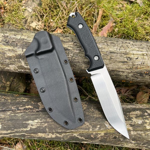 - Blade: fixed blade (full tang), drop point style with flat grind, plain cutting edge