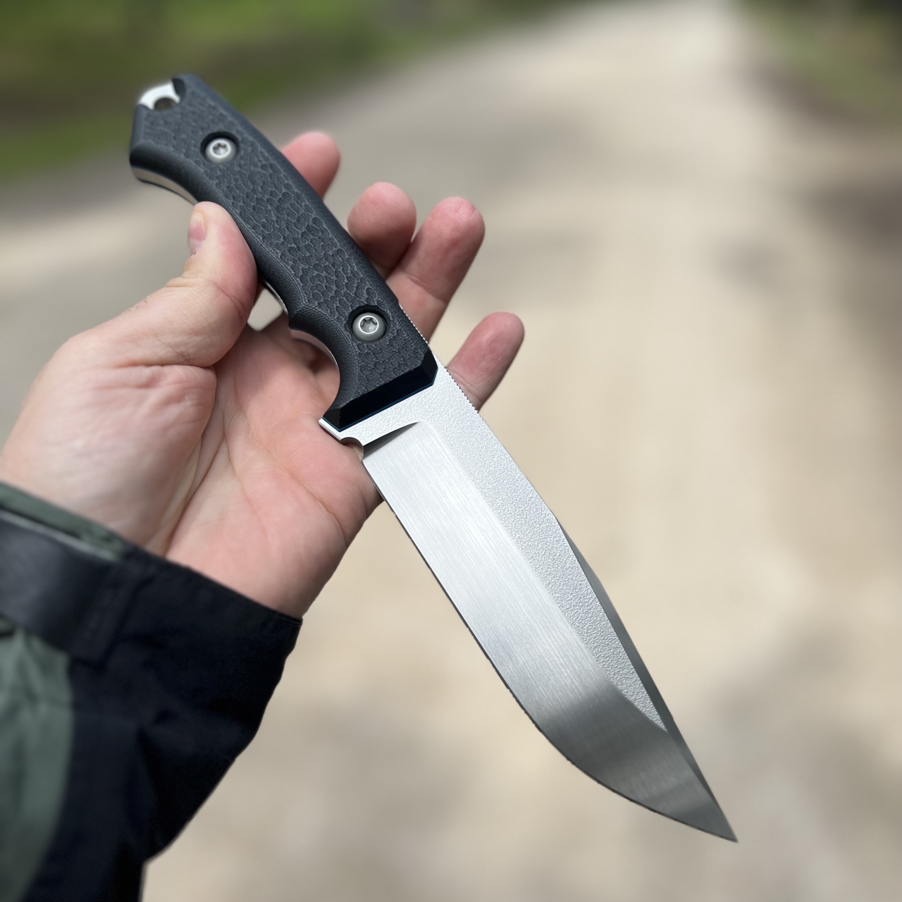 The handle linings are made of G10 composite. The material is resistant to moisture, temperature changes, most solvents and acids, and has high resistance to mechanical damage. The handle covers have been screwed with steel screws with a finish consistent with the finish of the blade (M5 screws are also hand-finished).