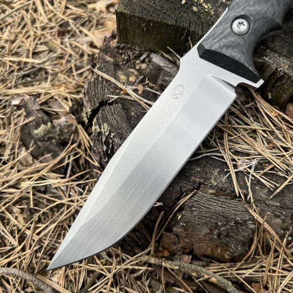 The handle linings are made of elegant carbon fiber. The material is resistant to moisture, temperature changes, most solvents and acids, and has high resistance to mechanical damage. The handle covers have been screwed with steel screws with a finish consistent with the finish of the blade (M5 screws are also hand-finished).