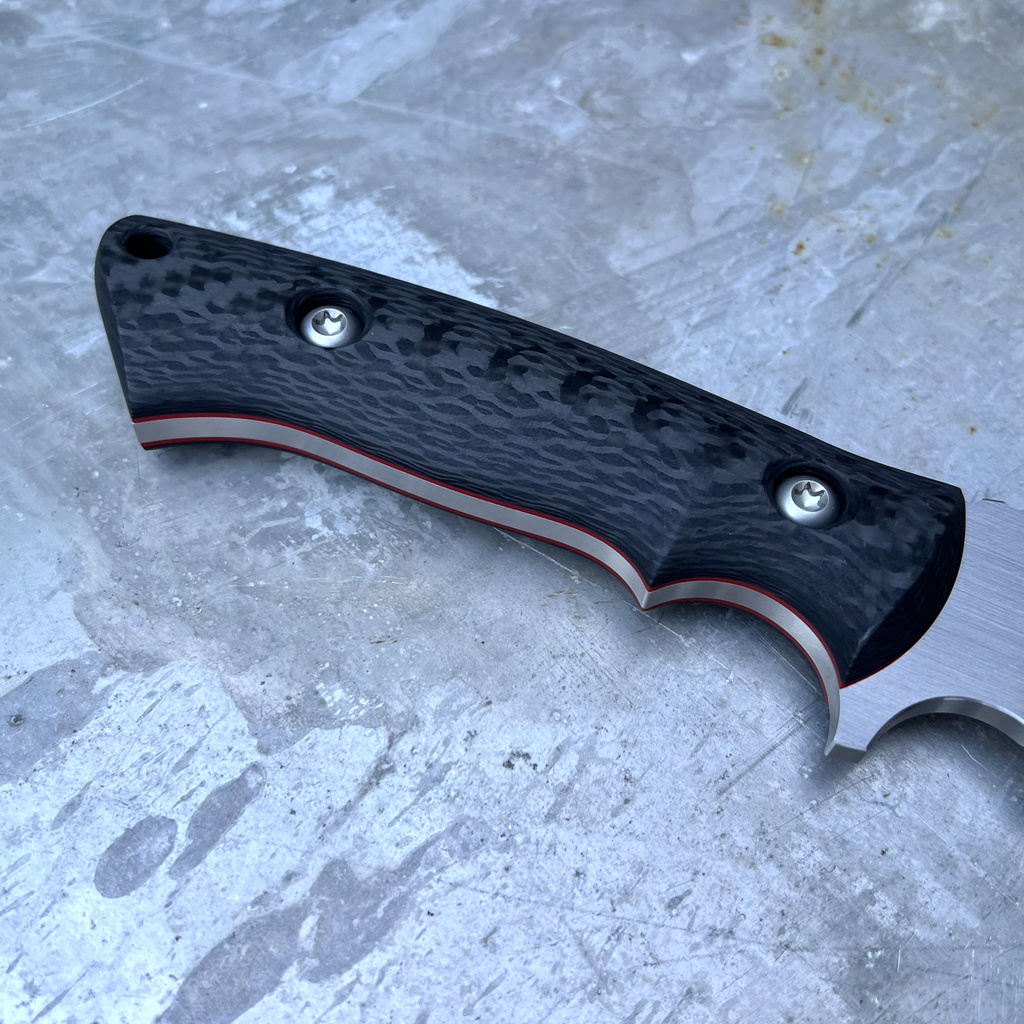 KD Knives Kamil Długosz Defender Gen. 2C “Carbon & Blaze” | Satin Elmax Carbon Fiber Red Spacers