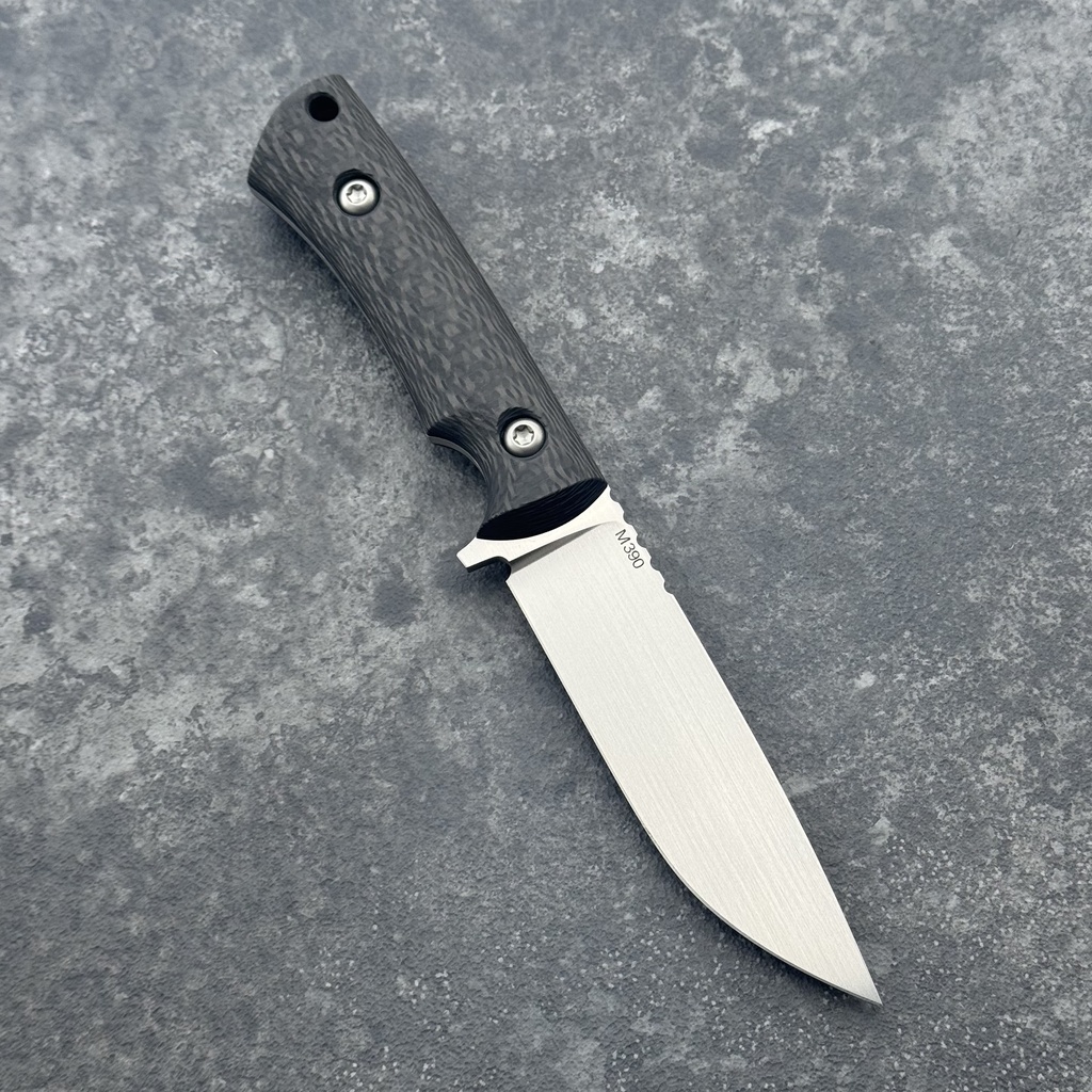 - Steel: M390 (~60 HR), handmade horizontal satin