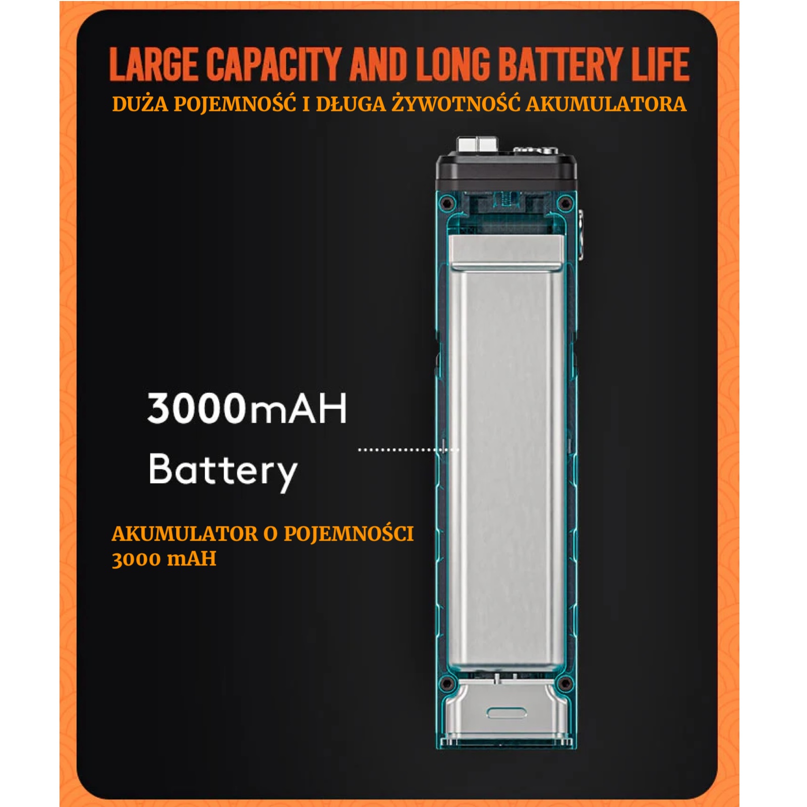 - Zasilanie: wbudowany akumulator litowo-polimerowy 3000 mAh