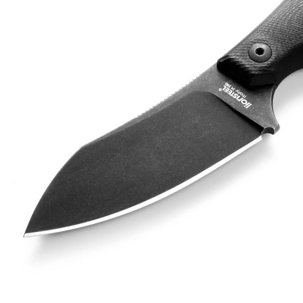 LionSTEEL H1 Black PVD Stonewashed M390 Black G10 Kydex has a modified sheepsfoot blade, with a flat grind. The M390 steel blade has a stone wash finish. Solid® handle from one piece of black G10 and back ring allow for a comfortable, safe grip. The black leather knife sheath allows to carry the knife in choosen vertical or horizontan position and it is compatible with MOLLE systems.