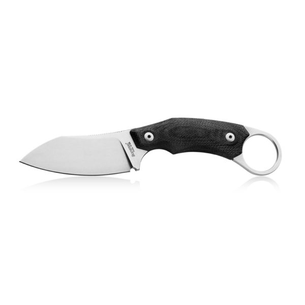 H1 is a compact knife with a full tang design that perfectly fits into the outdoor and EDC (EveryDay Carry) conventions. It can also be a backup knife during all kinds of expeditions. A fairly universal blade with a belly and arched spine, modern, strong steel and a construction resembling a karambit with a finger ring will find many applications.
