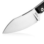 - Blade: fixed blade (full tang); modified sheepsfoot style blade with flat grind, plain cutting edge