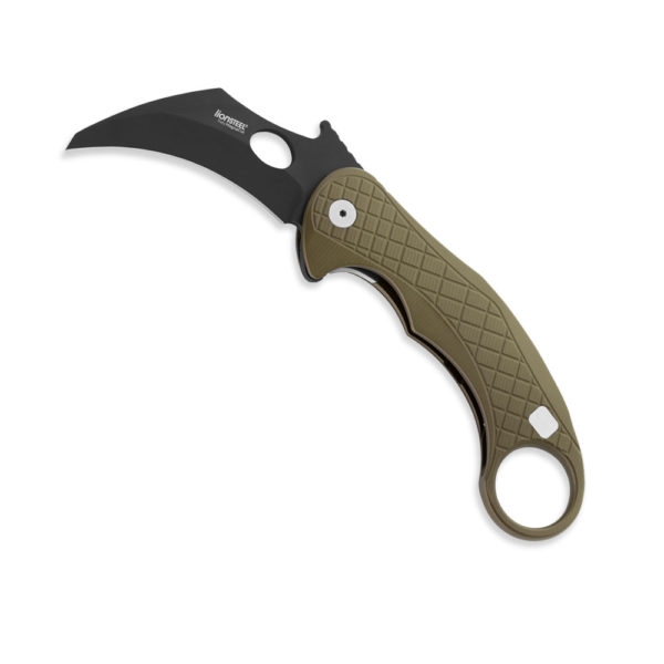 - Blade: folding knife, howkbill profile, flat grind, plain cutting edge