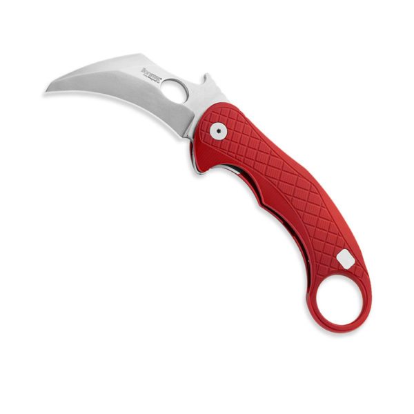 - Blade: folding knife, howkbill profile, flat grind, plain cutting edge