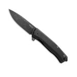 Titanium handle scales are coated by PVD tianium coating and finished by stone wash. Scales are full black.