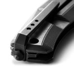 Tip-Up carrying clip located in front of the finger ring of the handle allows you to carry a knife in a pocket or clipped to a belt. The clip is made of steel. It is also possible to move the clip to the other side of the handle for left hand carry. It is attached to the edge of the handle with a screw equipped with a tungsten carbide glass breaker. For people who do not use this function, the manufacturer has provided a replacement mounting screw without a hammer, included in the kit.