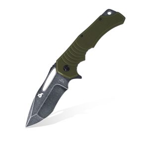 - Blade: folding knife, drop point profile, flat grind, plain cutting edge