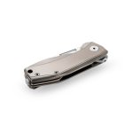 The knife is opened due to a subtly protruding from the blade, a removable flipper (fin). The knife unfolding is very easy and smooth thanks to the Double Crown system based on ball bearings. This system is an extension of the standard ball bearing and has two bearing rings for better blade stability and easier opening of the folder. The knife has a stable and durable frame lock protecting against accidental closing. A steel insert is placed in the titanium lock letter to increase the life of the locking mechanism. The insert also has a special tab to prevent the lock from being excessively pulled out of the handle (overtravel stop).