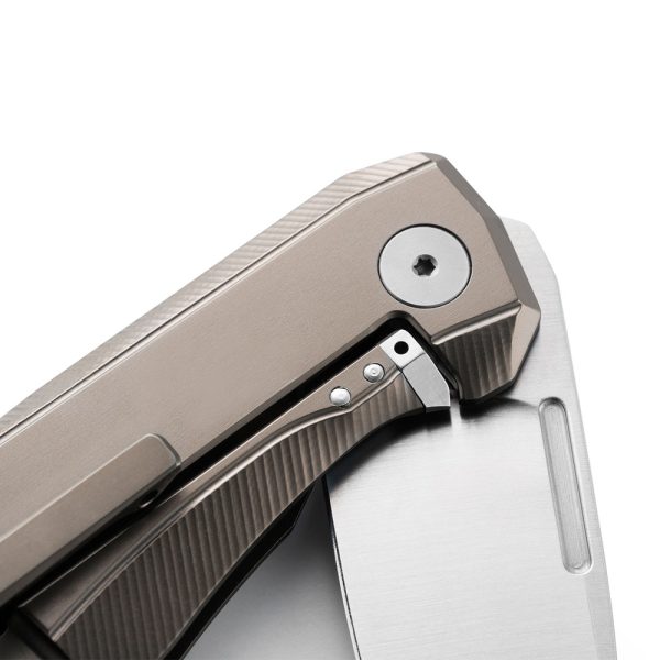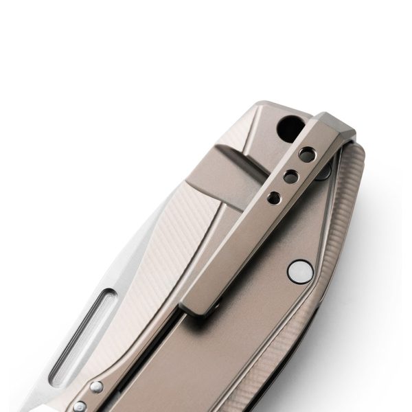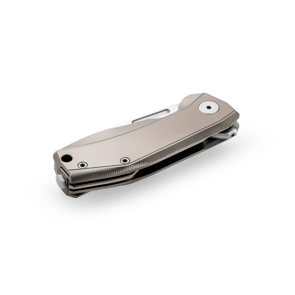 - Handle: titanium (milled), two-toned, titanium backspacer, double-sided carrying clip (Tip-Up)