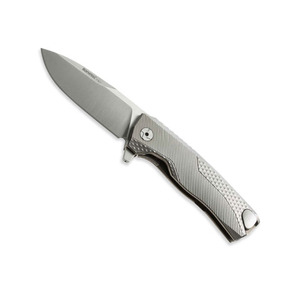 The knife handle is made of one pice of titanium. It is a durable material, light and practically stainless. SOLID, integral handle does not have a separate frame, scales or liners. This makes the handle more durable and is not exposed to torsional stresses and the blade has a solid stabilization during work.