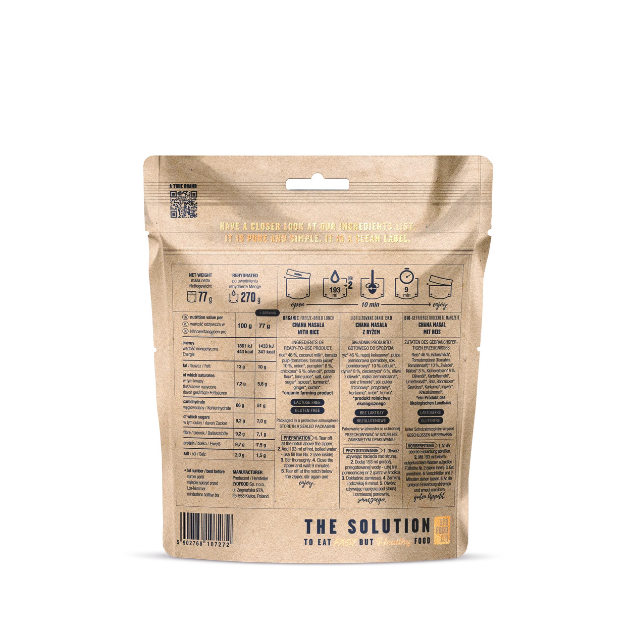 Lyofood Chana Masala 270 g Organic Freeze-dried Lunch: Chana Masala with Rice