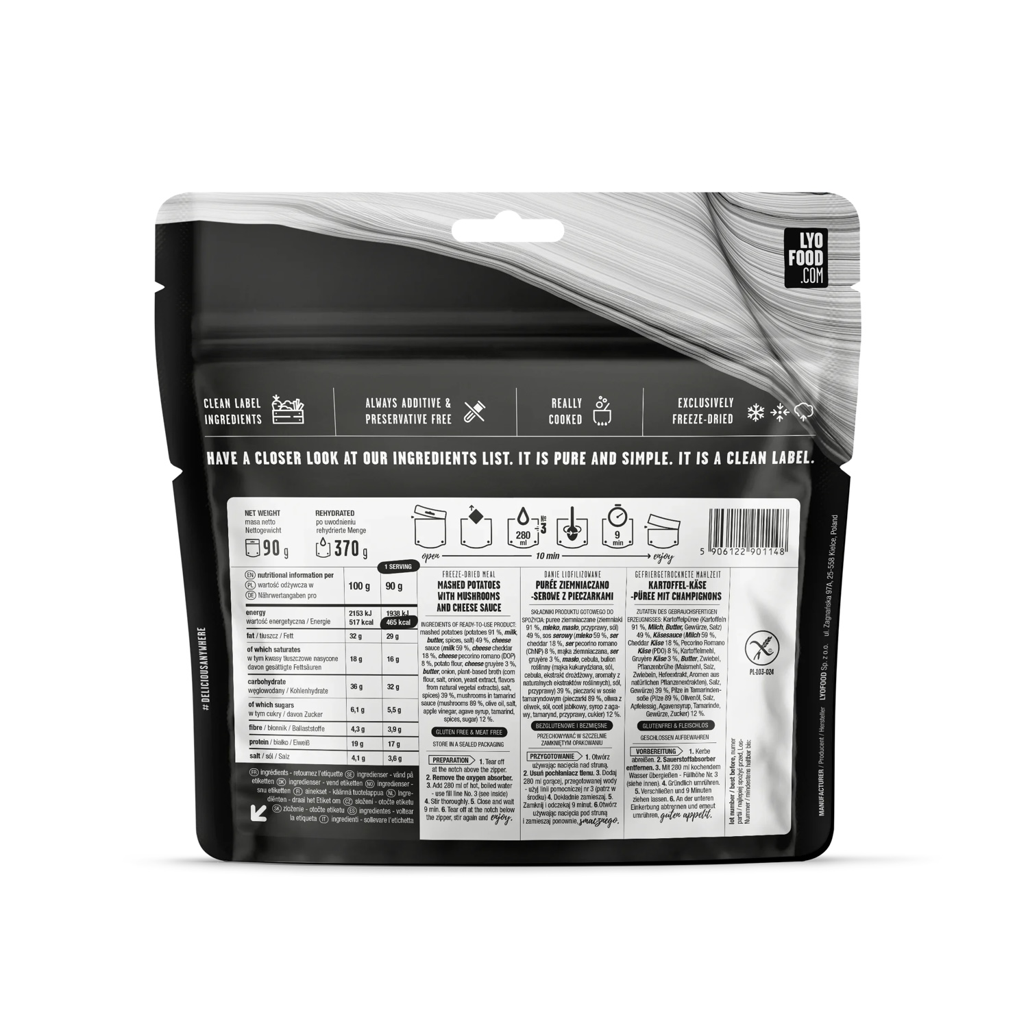 Lyofood Mash and Cheese Freeze-dried meal: Mashed potatoes with mushrooms and cheese sauce