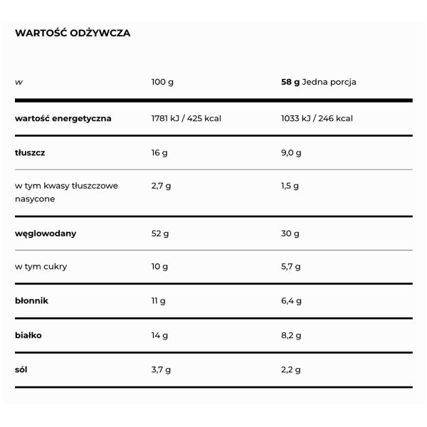 • Wartość odżywcza produktu w 58 g:
