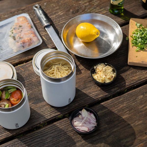 Pojemnik na żywność MiiR Food Canister 700 ml Black to idealne rozwiązanie dla tych, którzy wychodząc do pracy czy w drogę, w przerwach lubią rozkoszować się samodzielnie przygotowanym posiłkiem. Spożywanie ciepłego posiłku, który wcześniej został przygotowany w domu czasami staje się wyzwaniem, ale nie w przypadku pojemnika MiiR. Dzięki izolacji próżniowej z podwójnymi ściankami, pojemnik utrzymuje temperaturę przygotowanego wcześniej dania długo po jego zapakowaniu. Niezależnie czy mamy do czynienia z gorącą zupą, czy z lodami zapakowanymi na później, wymagana temperatura zostanie zachowana.