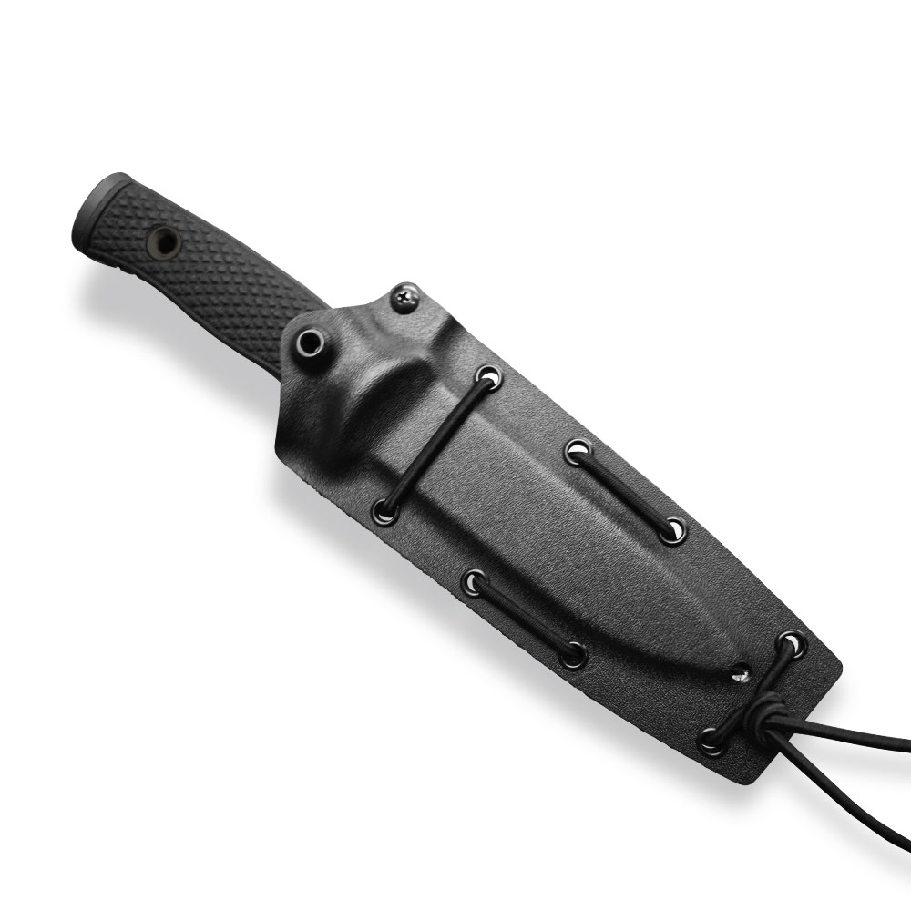 For many years, we have dreamed about designing a perfect military knife in the image of a fearless military man. To celebrate our collaboration with military clients, we came up with Mille Cuori which is a knife designed specifically for tactical operators. This knife is made from premium quality steel which is perfect for hard use and guarantees razor sharp cutting edge. The hand ground blade measures 132 mm long. To protect the steel from elements we coated it with extra tough DLC coating. Featuring waffle textured scales, Mille Cuori has an outstanding grip, ensuring absolute control in both wet and dry conditions. For universal functionality, the knife has a pommel which can be used as a hammer. Mille Cuori comes with a handmade Kydex sheath. Carrying the power and intelligence of a thousand warriors, Mille Cuori is a must-have knife for both soldiers with military ranks, and civilians with military hearts.