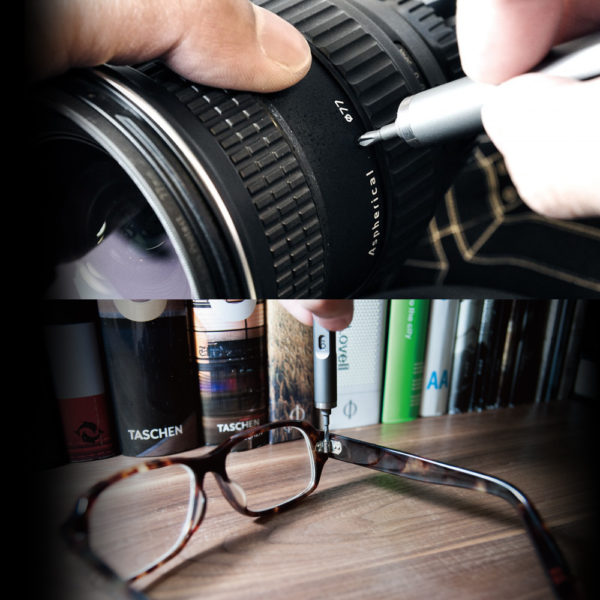 Each Tool Pen mini holds up to 5 bits. The pen body is machined by aluminum, and the material of precision bits is upgraded to high- quality “S2 TOOL STEEL. There’re 22 types of bits including special Torx Security and Pentalobe bits. You can flexibly work on fixing multiple devices such as small electronics, game console, laptop, tablet PC, mobile phone, toys, music equipment, glasses, wristwatch, as well as many household gadgets & personal ornaments etc. with a single “all- in-one” pen anytime & anywhere.