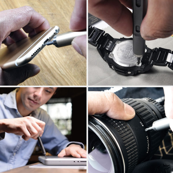 Each Tool Pen mini holds up to 5 bits. The pen body is machined by aluminum, and the material of precision bits is upgraded to high- quality “S2 TOOL STEEL. There’re 22 types of bits including special Torx Security and Pentalobe bits. You can flexibly work on fixing multiple devices such as small electronics, game console, laptop, tablet PC, mobile phone, toys, music equipment, glasses, wristwatch, as well as many household gadgets & personal ornaments etc. with a single “all- in-one” pen anytime & anywhere.